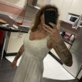 שמלה עם רקמה בעבודת יד פרחי השקד