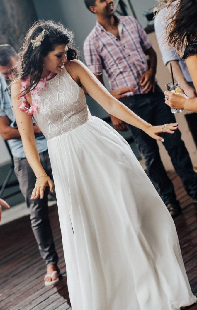 שמלה קלילה ונוחה עם גב חשוף, מנצנצת בדיוק במידה הנכונה, גרפה ים מחמאות 🙂