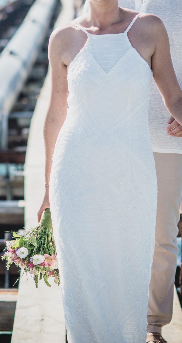 מוכרת את שמלת הכלה שלי, מחורזת לכל אורכה, בדוגמא יפיפיה..