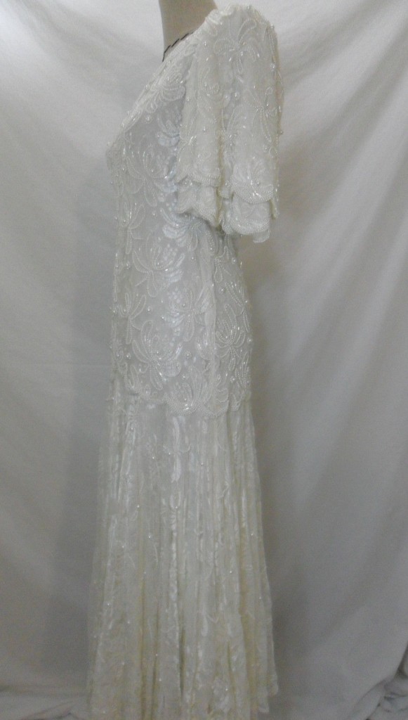 שמלת וינטג תחרה ובד מחורז