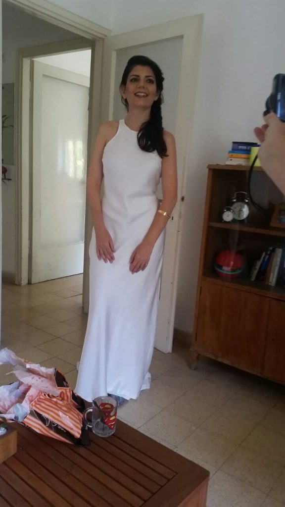 כשחיפשתי שמלה, היה לי חשוב שלא תהייה "כלתית" מדי בסגנון שלה, אלא שמלה בסגנון אורבני, נקי יותר, אבל עדיין אלגנטי. מצאתי שמלה כזאת אצל common raven, מעצבות צעירות שקלעו לטעמי בסגנון הפשוט, אך מתוחכם שלהן. השמלה תפורה באופן אלכסוני מה