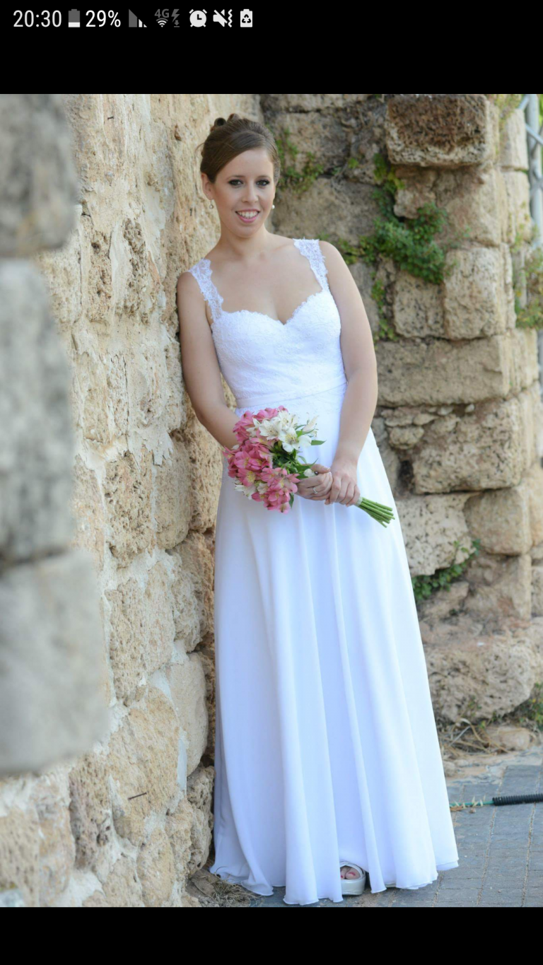 שמלה קלאסית רומנטית, גזרה מעולה שמתאימה לכל אחת. נלבשה פעם אחת בלבד. שמורה כחדשה.