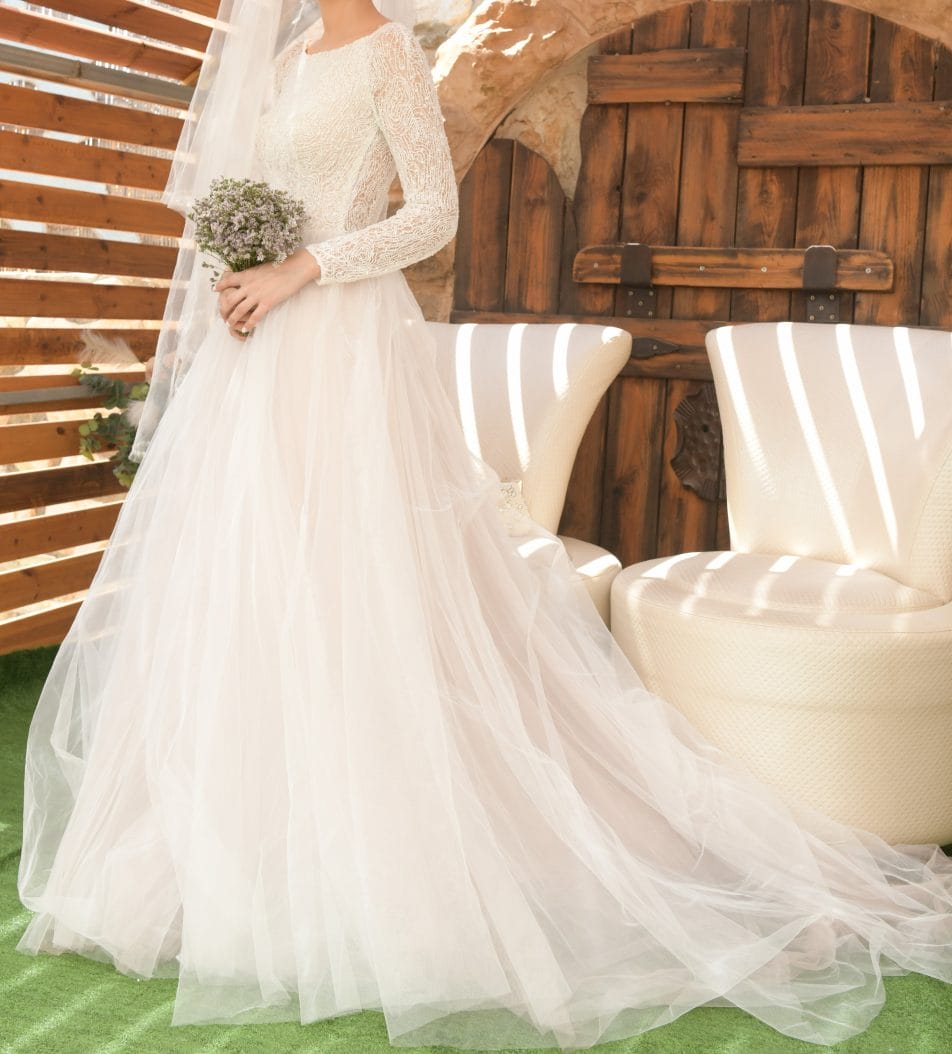 קטגוריה: גזרה קלאסית, שובל, שמלות כלה, שמלת כלה צנועה, שרוולים ארוכים