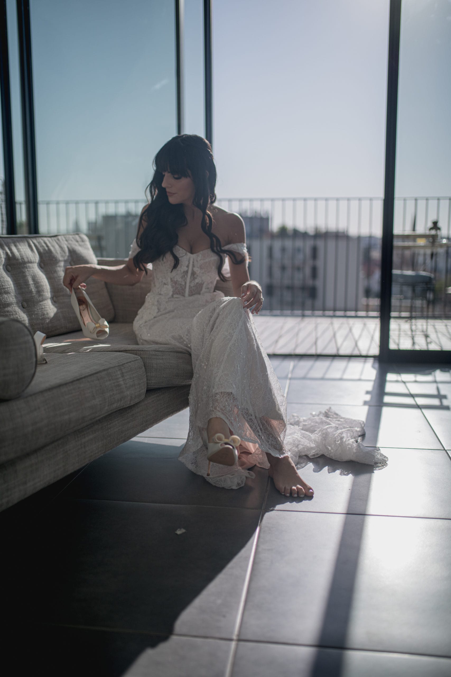 השמלה עם שובל, יש לולאה לשלב הריקודים!! את הכתפיות אפשר להוריד.