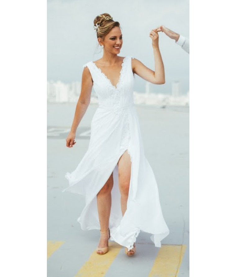שמלת כלה אלגנטית עם שסע – מתאימה כשמלה שנייה לריקודים או לטראש דה דראס