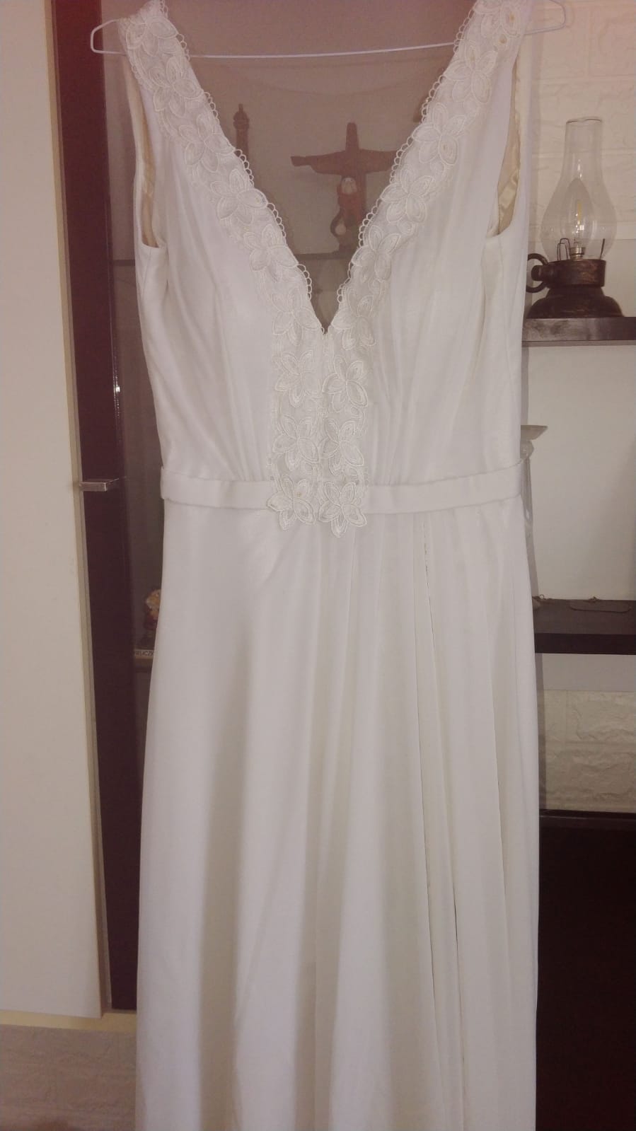 תיאור: שמלת כלה אלגנטית עם שסע. נוחה מאוד, אוורירית, גזרה של מותן גבוהה מאוד מחמיאה. במחשוף וגם בגב יש תחרה.
