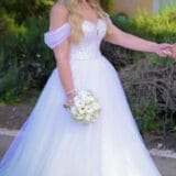 שמלת כלה מלכותית נוחה וגרפה מיליונים של מחמאות!! חלק עליון- מחוך עם שרוך ותופסנים, נוח ולא מעיק (חשבתי על כל הפרטים במיוחד שלא יציק מתחת לבית השחי) החלק התחתון- נפוח בדיוק כמו נסיכה מהאגדות.מגיע עם חישוק מנפח שלובשים כמו חצאית ( מתחת לשמלה) . מתאים למידות 38-44.