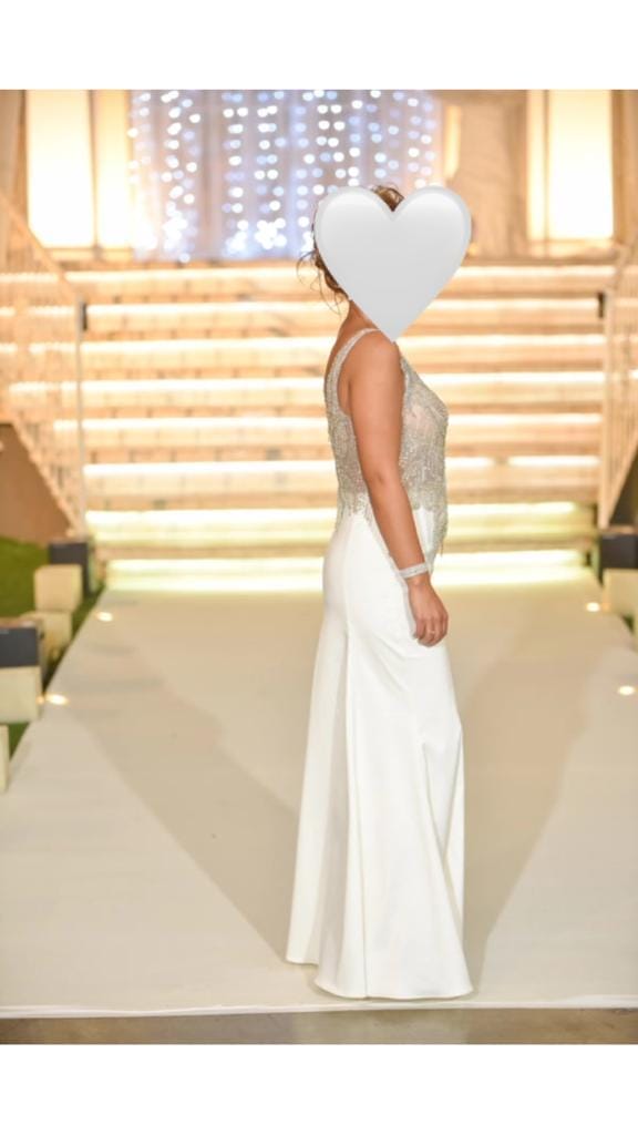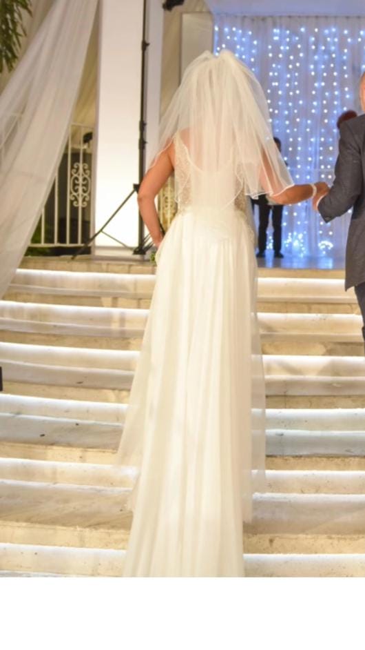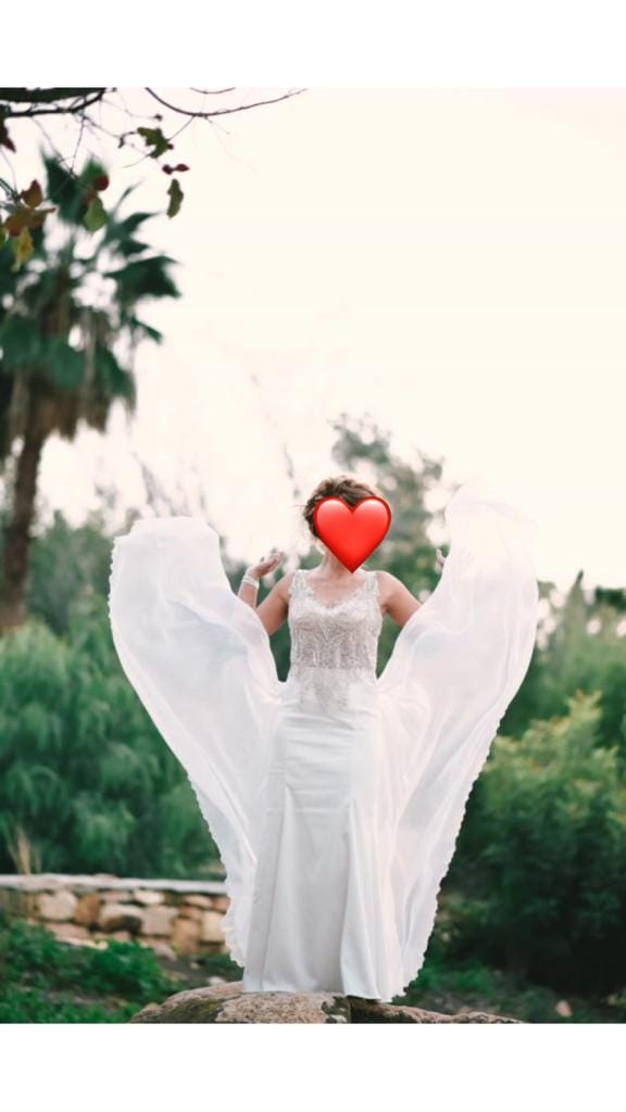 שמלת כלה קלאסית ברמה גבוהה. נקייה וחדשה (אחרי ניקוי יבש). חצאית סטאן לייקרה של חברת "ארמני" וחלק עליון בשילוב אבני סברובסקי. הכול נעשה בעבודת יד. כולל: הינומה ו-2 שובלים שמתחברים לשמלה. אחד קצר לצילומים ושני ארוך לכניסה לחופה.